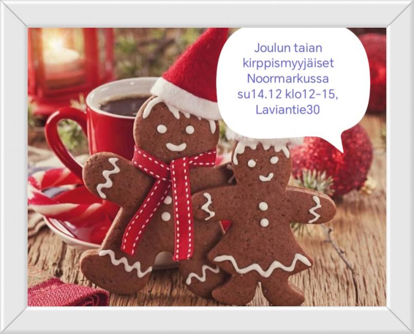 Joulun taikaa:uutuutena jouluinen second hand uusien ja ruokatuotteiden lisäksi.Tule kokemaan joulun tunnelmaa tonttupolulla joka kiertää pihassa,tiernapojat esiintyy salissa klo14.30 ja klo 15pääsee laulamaan jouluisia yhteislauluja kahviossa kahviossa vapaa jouluaskartelupiste. Koristellaan Taatan tuvan joulukuusi:tuo koriste mukana tai askartele omasi Kahviossa myynnissä mm.riisipuuroa ja luumu-rusinasoppaa myös omiin astioihin kotinvietäväksi 5€/annos Kysy myyntipaikkaa mieluiten tekstarina p.0458818112 tai taatantupa@gmail.com