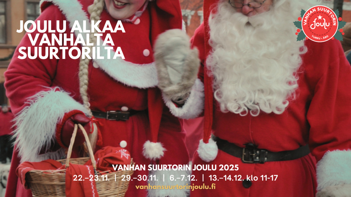 Turun Vanhan Suurtorin sekä sen lähialueet täyttyvät taas jouluisista tunnelmista, kun Vanhan Suurtorin joulu avaa ovensa. Nähtävää ja tehtävää riittää koko perheelle. Torilta löydät niin käsityöläisten laadukkaat myyntituotteet kuin suussa sulavat, jouluiset herkut. Markkinoiden kattavasta ohjelmasta löytyy niin musiikki- kuin sirkusesityksiä, joista voit nauttia koko tapahtumapäivän ajan. Joulupukkia ja Joulumuoria voit käydä tervehtimässä Pukinpajalla. Vanhan Suurtorin joulun tunnelmasta voi nauttia kylmälläkin kelillä lämpimän glögin kera. Tapahtumaan on vapaa pääsy.